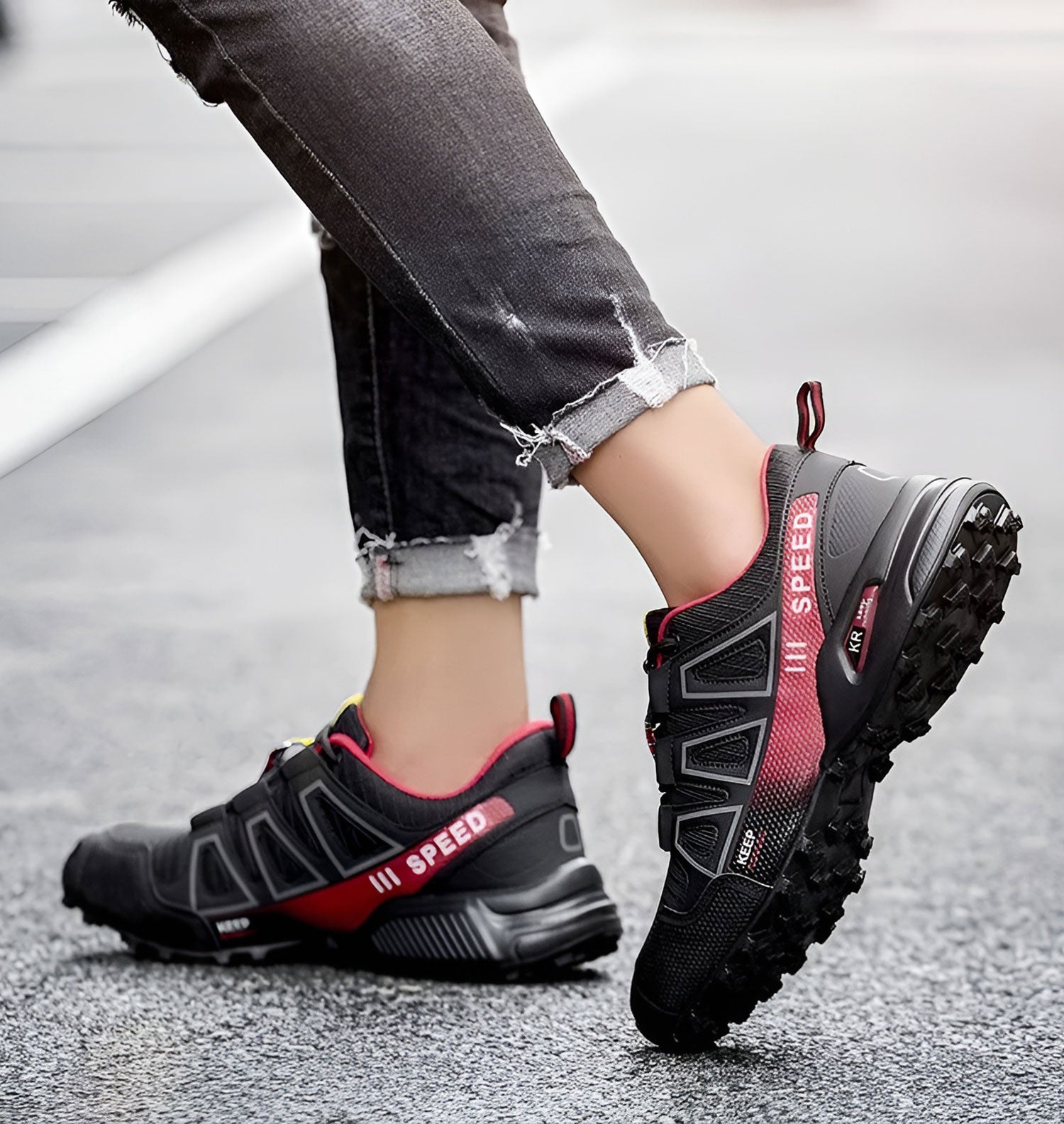 Dank der rutschfesten Gummisohle bieten diese Wanderschuhe hervorragenden Halt auf nassem, matschigem oder felsigem Boden. Sie sind speziell für technisches Gelände und schwierige Bedingungen entwickelt, sodass du jederzeit sicher und stabil unterwegs bist.