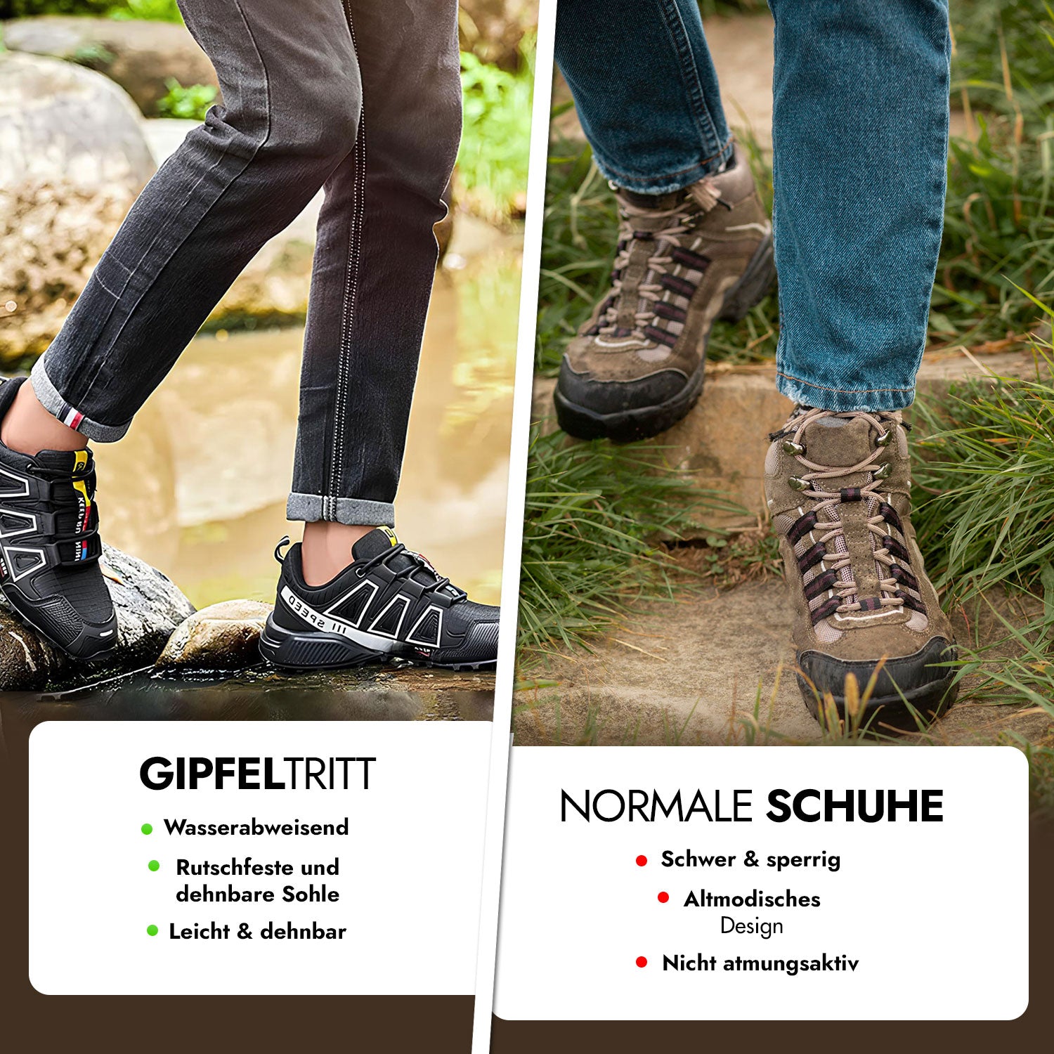 Unsere Gipfeltritt Wanderschuhe bieten dir eine perfekte Passform, die sich an deinen Fuß anpasst. Mit einem flexiblen Obermaterial und einer gepolsterten Innensohle sorgen sie für maximalen Komfort, egal ob du auf anspruchsvollem Terrain oder bei langen Wanderungen unterwegs bist.